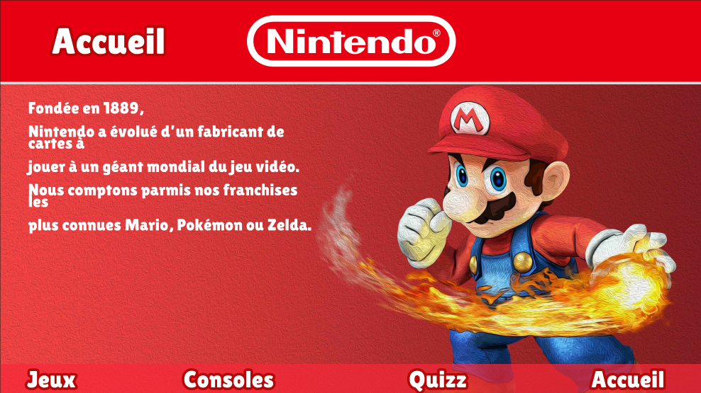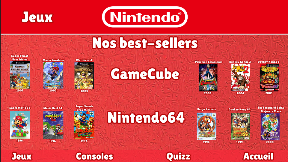 Page de présentation sous forme de tableau des jeux Nintendo :